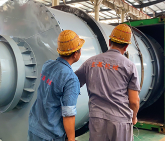本公司菱鎂礦回轉窯依據筒體規格尺寸分為十一個型號,范圍為?1.6×32m-?4×80m,筒體直徑2.2m以上(含2.2m)配輔助傳動,3.0m以上(含3.0m)支撐由三組變為四組,窯轉速0.58-2.85r/min,斜度3.5-4.0%,配套主電機功率18.5KW-355KW,滿足時產2t-20t菱鎂礦產品的煅燒需求。